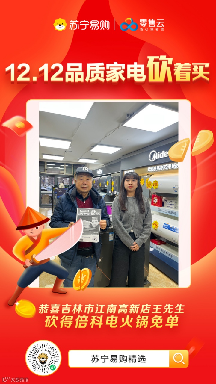 “我是在小程序上参加的活动,让朋友帮我砍价,最后真的免费领到了倍科电火锅。”吉林市的消费者王先生说。近日,王先生在朋友圈看到苏宁零售云“会员一分购家电”的活动,通过邀请好友帮砍,获得了倍科电火锅的免单权。此外,通过“苏宁易购精选”小程序在线参与“预存送好礼”活动,消费者可获得预存10元抵300元的代金券,到店选购家电时即时抵扣。线上福利活动吸引消费者到店,苏宁零售云运营负责人表示,双十二大促活动开启以来,门店客流量同比增加50%。