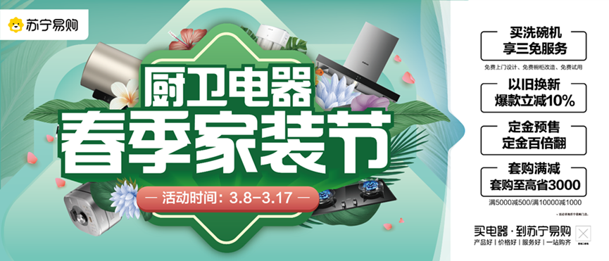苏宁易购表示,将以春季家装节为契机,携手上下游合作伙伴,以更丰富的产品、更大的补贴力度、更省心的服务体验,打造厨卫电器焕新“最佳入手期”,助力家消费提质扩容。