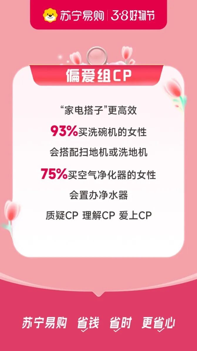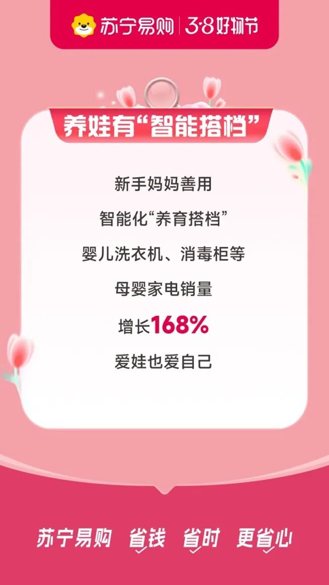 3月8日,苏宁易购发布《女性电器消费趋势观察》,依托苏宁易购大数据,观察女性电器消费习惯。观察显示,女性消费者在购买电器时,更注重电器与居家环境的和谐统一,善于搭配“家电搭子”,借助智能母婴家电省心育儿,同时化身精算师,追求质性比。