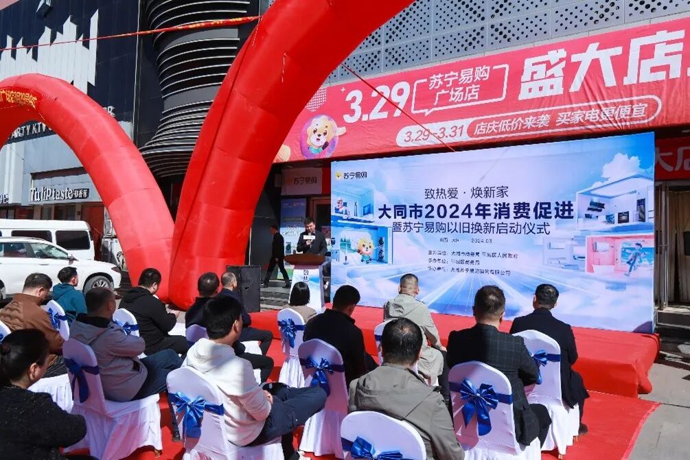 响应国家政策号召,苏宁易购迅速推进以旧换新活动落地。继3月26日率先联合超30家家电生产企业签署《以旧换新行动联合公告》,3月29日苏宁易购全国36个大区举办启动仪式,包括北京、西安、成都、上海、徐州、贵阳、昆明、兰州、济南等,全面开启换新活动。数据显示,3月29日补贴开启当天,苏宁易购门店家电以旧换新订单占比近60%,门店客流大幅上涨。