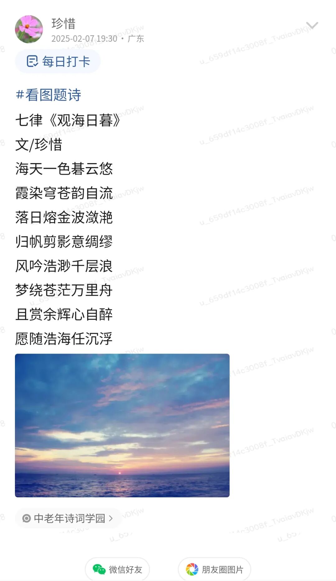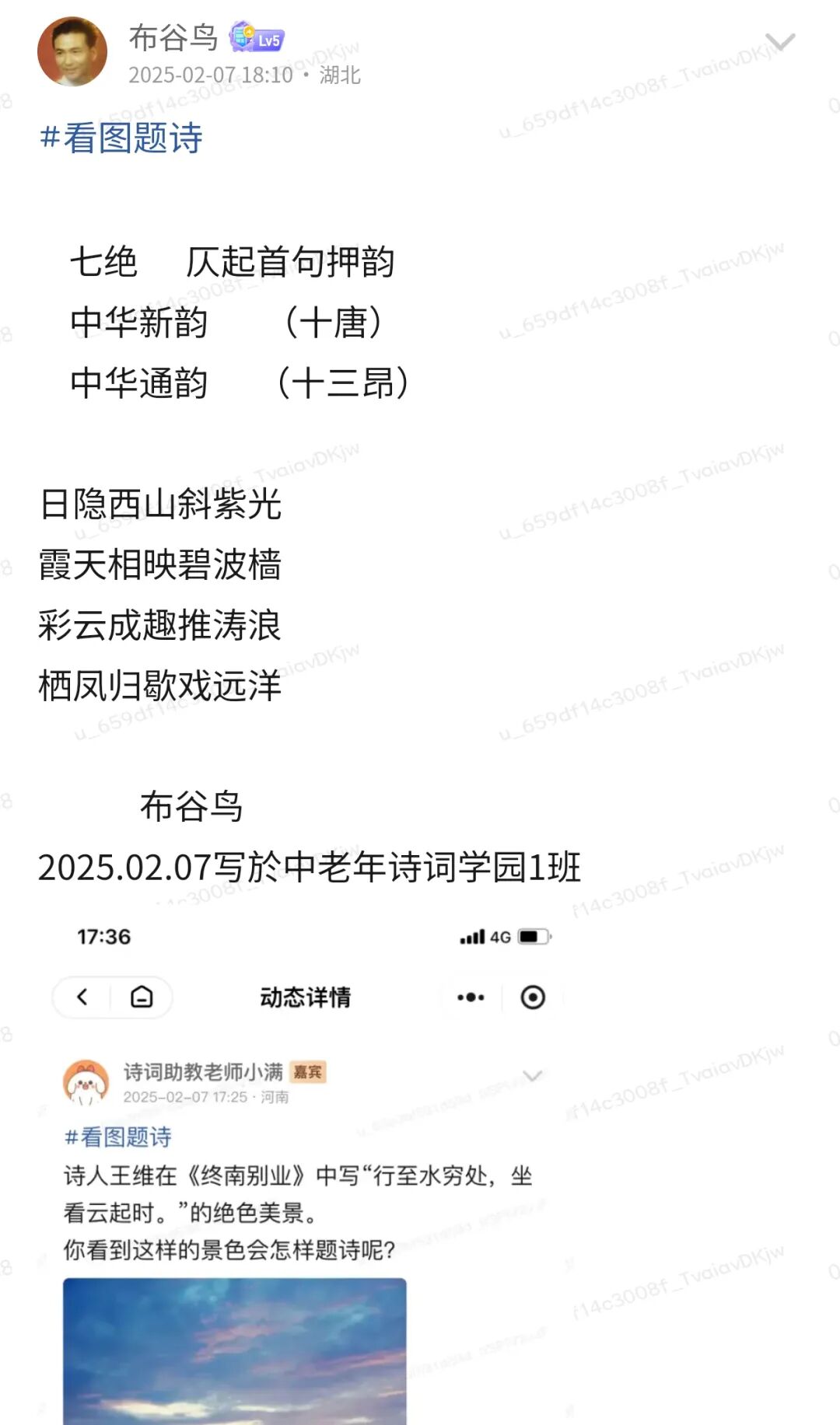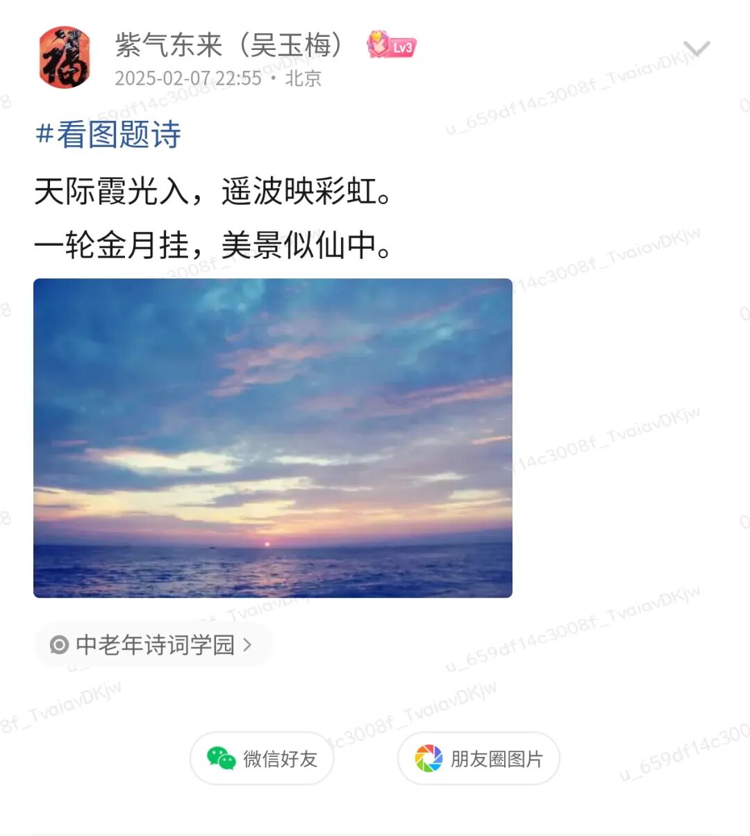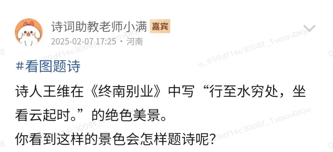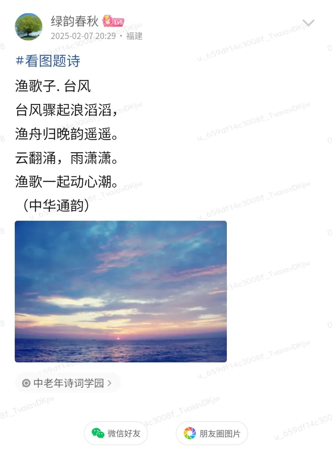 为了让诗友们的笔下带点诗意,诗词天地会员圈每周都会有“看图题诗”活动,找一张充满诗意的图片,来进行一些诗意的创作。