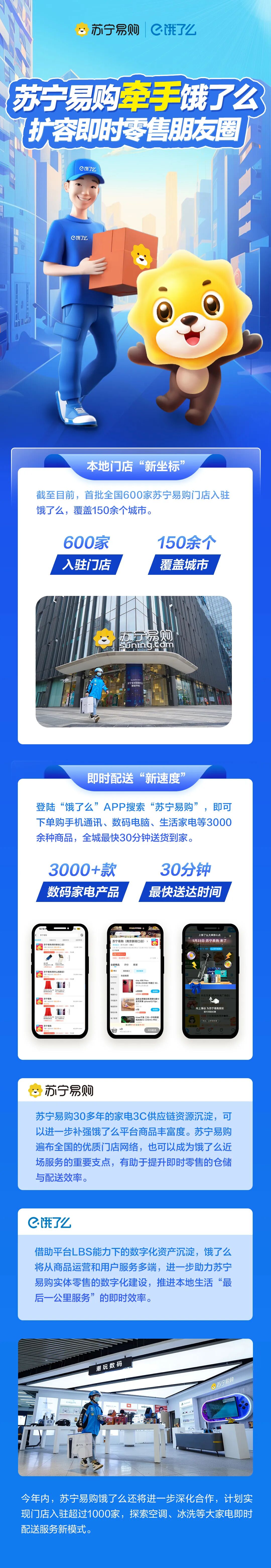 苏宁易购饿了么达成战略合作,全国600家门店入驻!