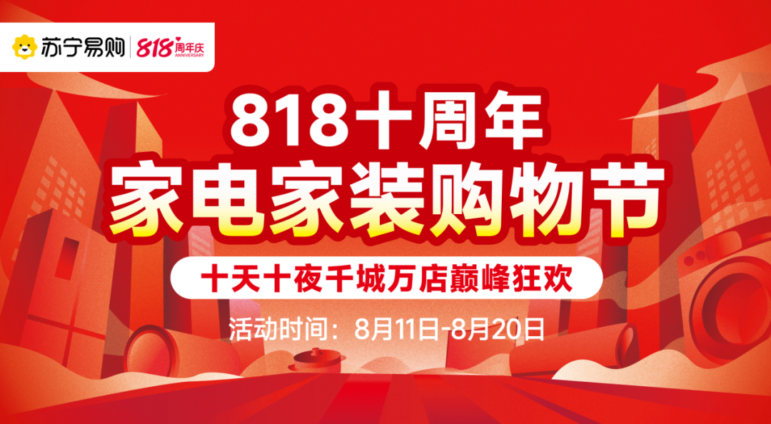 为加大优质供给,助力“家消费”提质升级,苏宁易购8月持续落地“818十周年家电家装购物节”,并将以线上平台和全国超万家门店为支点,于8月11日-20日重点打造双线联动、覆盖城乡的“十天十夜千城万店巅峰狂欢”活动,为消费者提供补贴力度更大、产品选择更多、服务保障更佳的消费体验。