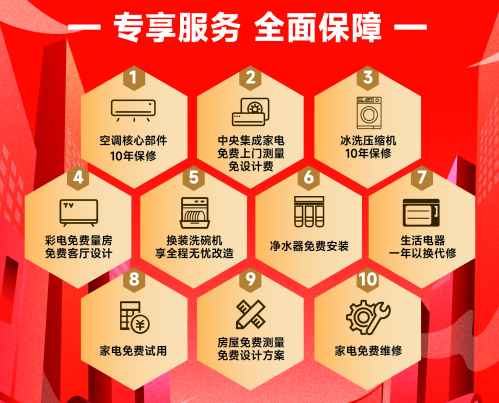 除优惠活动外,苏宁易购还针对818用户体验,升级“十免服务”,全面提升家电售后保障和家庭局改换新定制服务体验。据悉,在苏宁易购门店购买空调、冰箱、洗衣机等家电产品可享核心部件十年保修,生活电器一年以换代修,彩电、中央集成家电免费量房设计,换装洗碗机免费改水改电改橱柜,净水器免费安装等服务。针对有家庭局改换新需求的用户,苏宁易购门店还将打造入户、厨房、客厅、卫生间、阳台、个性化空间等多重生活场景的定制服务,消费者通过报名预约即可获得家电家装一体化解决方案。