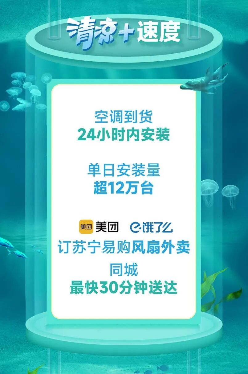为了提升夏日清凉类产品配送及安装效率,苏宁易购已在全国范围内集结超8万人的空调服务队伍,预计单日最高空调安装量将超过12万台,并将针对空调“热销区域”进行人员调配。对于电风扇、空气循环扇、加湿器等清凉生活家电,苏宁易购还将持续联合美团、饿了么等即时零售平台,推出同城配送最快30分钟达服务,保障清凉“快速入户”。