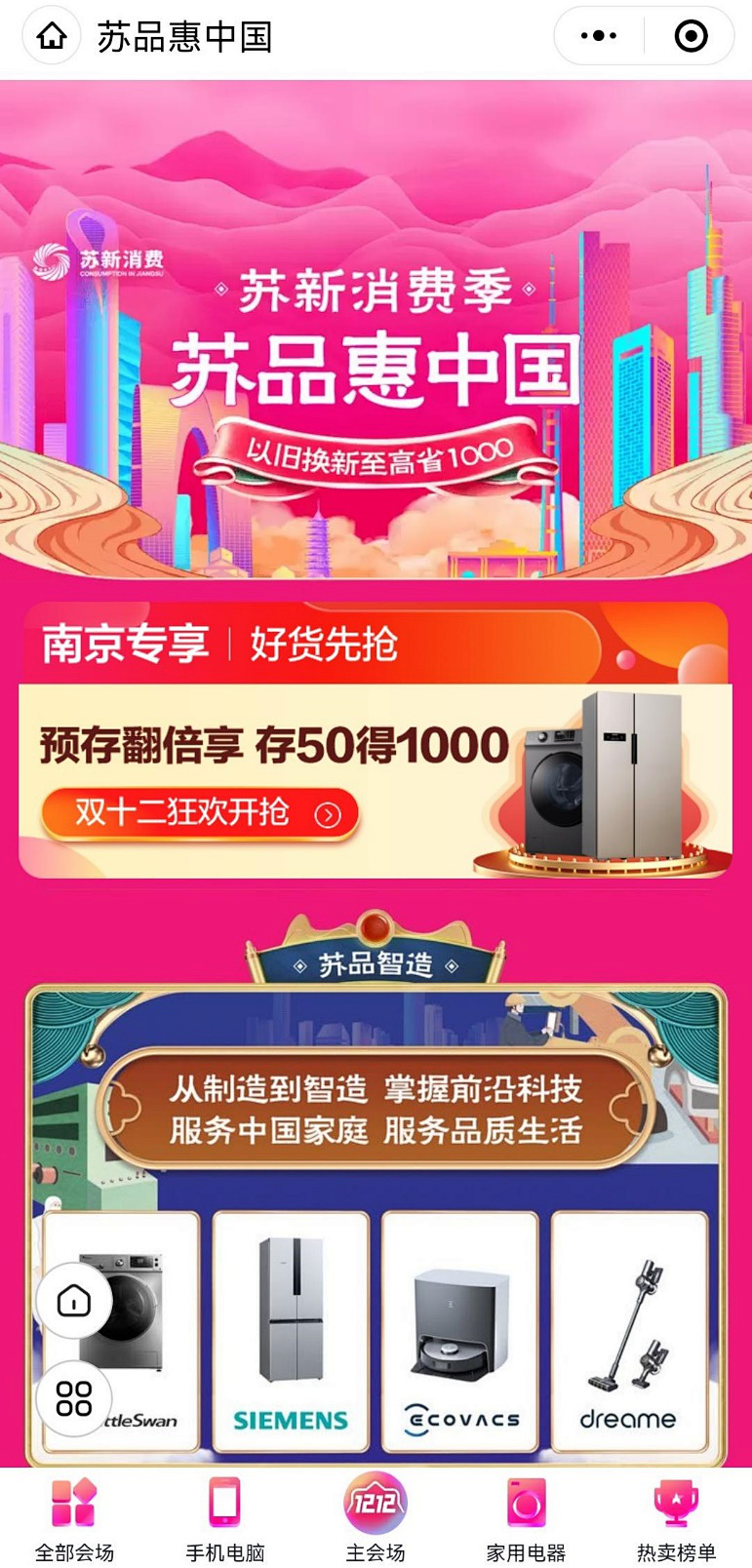 其中,以苏宁易购为代表的平台企业共同参与“百亿让利·惠享江苏”活动。苏宁易购作为从江苏发展起来的大型零售企业,将联动百大核心品牌,融合线上平台和江苏省内1000余家门店全面参与。在启动仪式现场,苏宁易购集团副总裁王哲表示:“苏宁易购将推出十亿元补贴,全省派发;集合十万件爆款,全省首发;助力十万户焕新,全面升级;打造十大项服务,全线共享。”