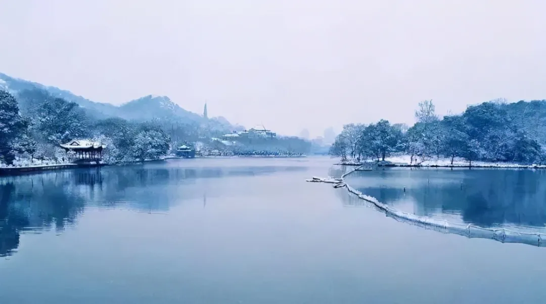 雪后的西湖,就像一幅徐徐展开的山水卷轴。湖面上冰花一片弥漫,天与云与山与水,浑然一体,白茫茫一片。
