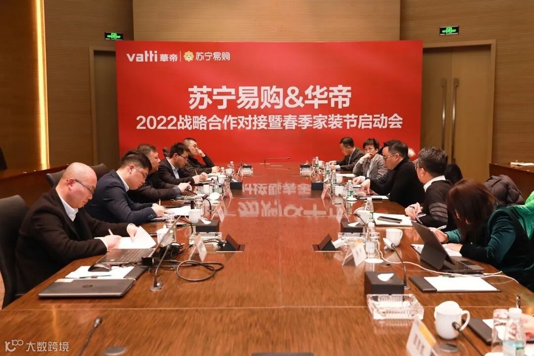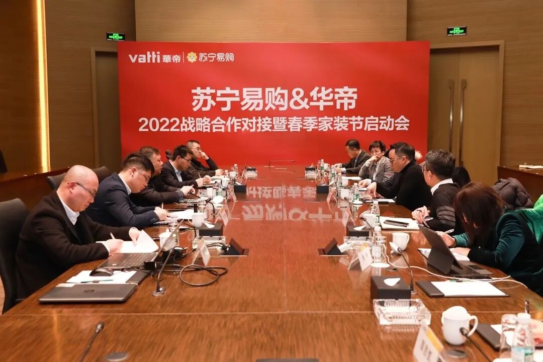 2月23日,苏宁易购与华帝联合开展2022年战略合作对接暨春季家装节启动会。