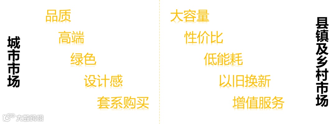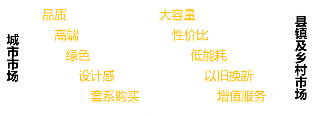 在城市,大家多集中居住在商品房,家家户户必备油烟机,而农村居住较为分散,开放式厨房居多,排风扇就可以搞定油烟。空调对城市消费者是刚需,而农村车少人稀,独门独户的比较多,通风好,对空调的需求相对较低。