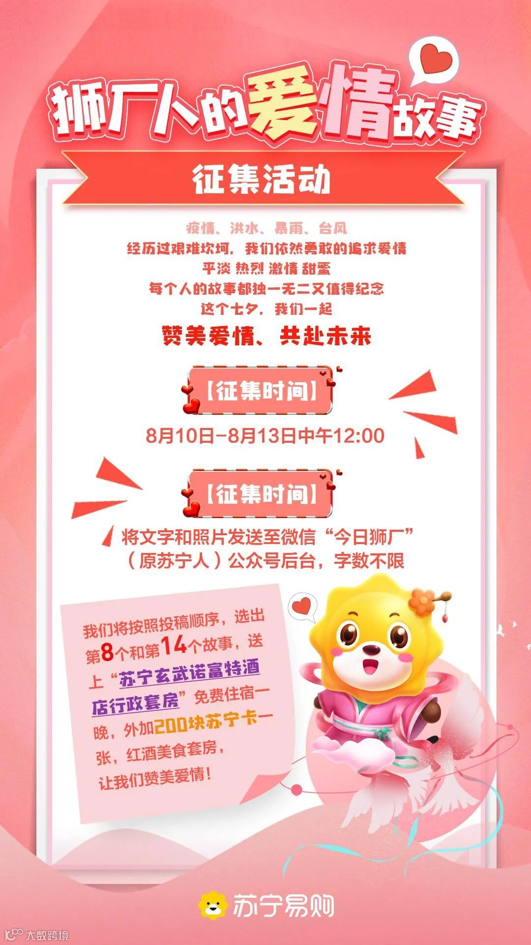 从今天(8月10日)起,至8月13日中午12:00,狮厂人的爱情故事浪漫征集中......