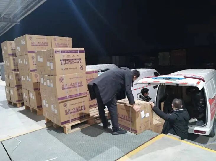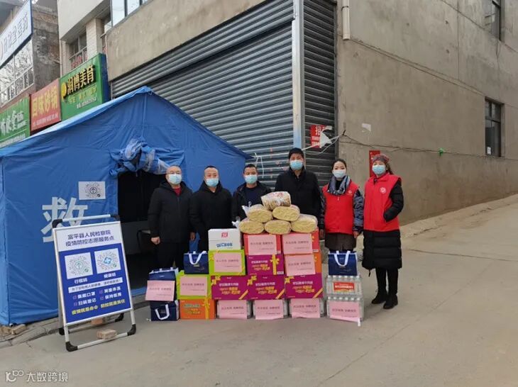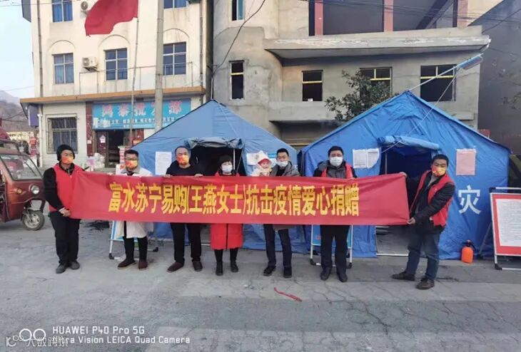 而在另一边,富平苏宁易购零售云店的老板计宗涛则带领员工,装了满满一车食品物资送到了县城防疫工作站,为县城疫情防控点工作人员提供生活必需品。