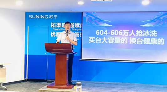 围绕618大促活动,线下运营中心总经理相艳风对活动内容及各项要求作出了解读。南宁大区将率先发起超级门店日,全民抢冰洗活动,配合618家电风暴活动,联合多个线上品牌给消费者带来了千万现金补贴发放、满千返百、以旧换新补贴及安装等多个优惠活动,让价力度巨大,还有更多好礼相送。