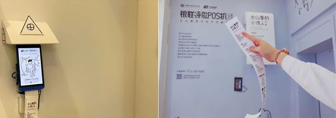 本次公益行动将大山中孩子们的诗以诗歌POS小票的形式灵巧呈现,用最为亲切的方式展现山区孩子的无限才华,让消费者亲身感受扑面而来的纯粹美好。活动期间共募集捐款超10W,所有募捐的款项均将进入宋庆龄基金会,为项目帮扶地区的留守儿童修建图书馆,设立班级阅读角及建立在校艺术素养教育课程。