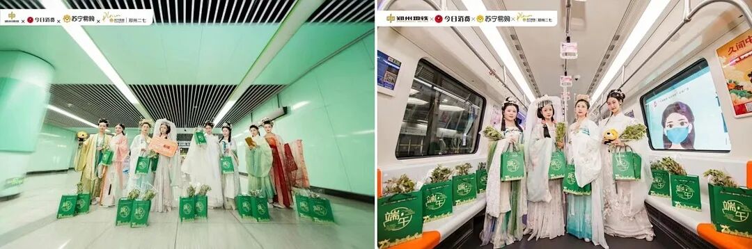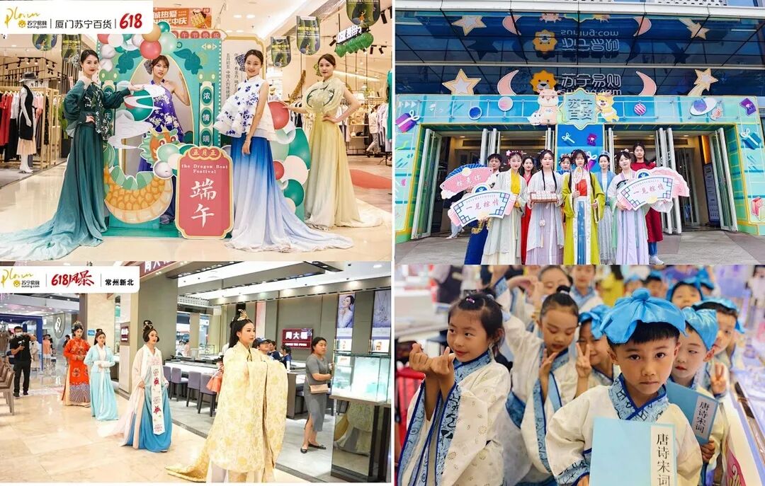 华服穿搭在中国已拥有六百万爱好者,造就百亿量级市场。国货风潮遇上传统佳节,这给予了消费者更大的想象与体验空间,而打造富于传统文化内涵的公共空间与娱乐活动,则会吸引越来越多的国民青睐。全国37家苏宁百货结合端午国风元素打造国风华服秀、粽情端午DIY、香囊五彩绳手编、国潮艺人糖画、书法课堂、香茗茶室DIY、国潮龙舟DIY等百余场传统文化活动活动,让消费者亲身感受传统文化的魅力,也促进了客流爆发式增长。其中郑州苏宁百货联合郑州地铁及电视台开展端午送礼活动,两天时间霸占微博热搜前十,阅读量更是突破亿次。