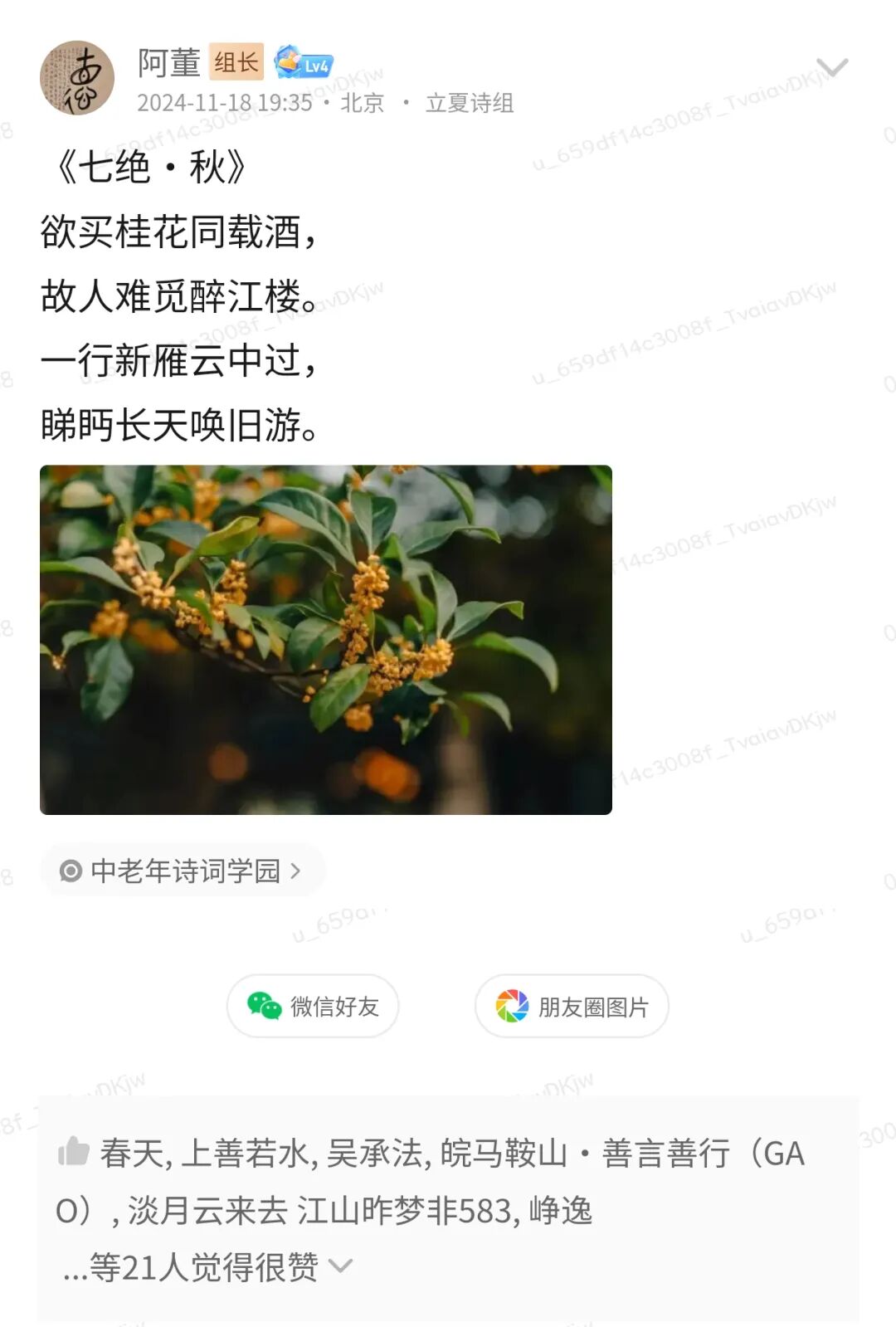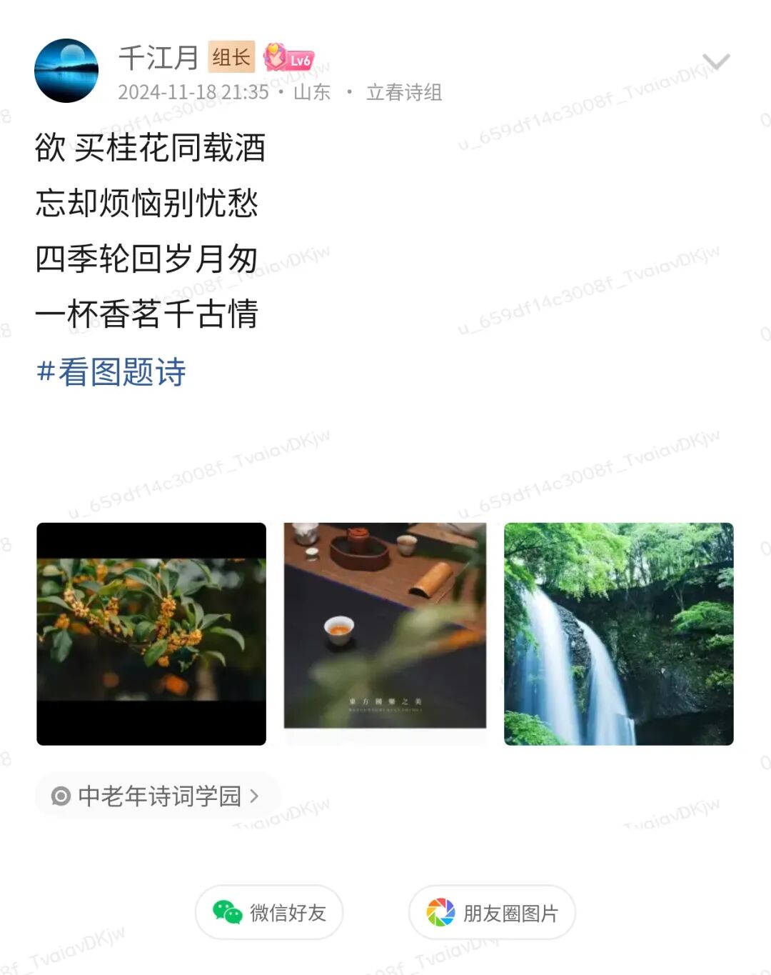 源远流长的经典诗歌,是历史长河中经久不衰的瑰宝,散发文学的芳香。诗词天地会员圈不仅有接诗活动,每周还有飞花令、看图题诗等活动,想和万千诗友一起交流进步吗?