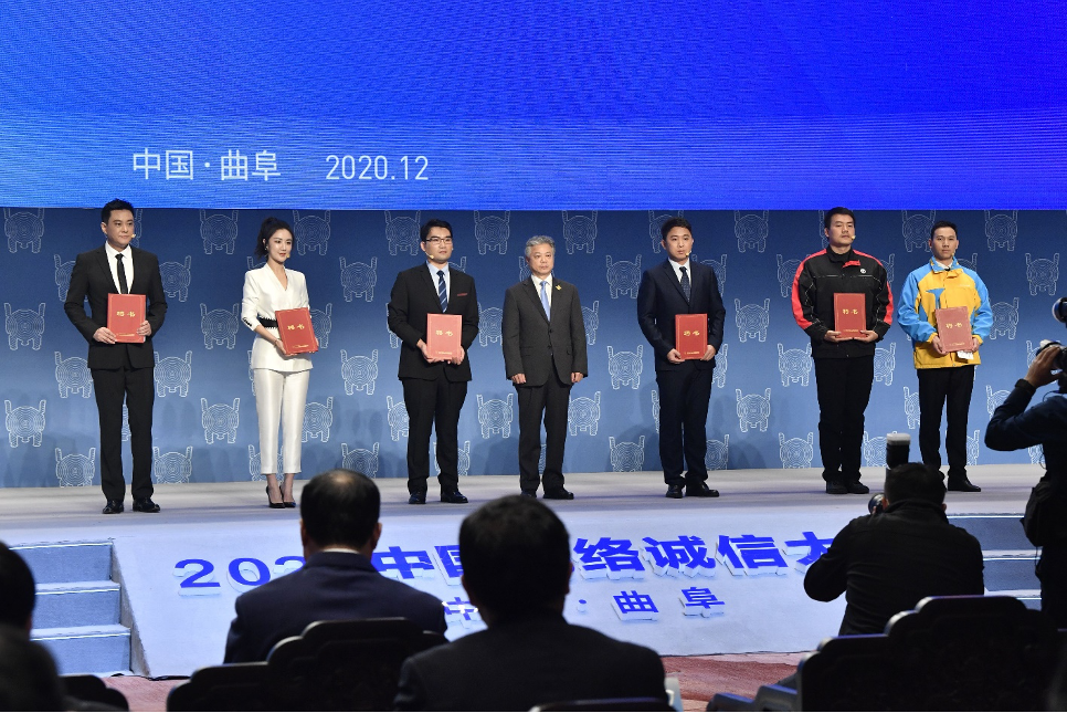 会上发布了2020年度中国网络诚信十大新闻和2020年度涉新冠肺炎疫情防控辟谣榜,举办了“青诚之声”宣誓仪式。获得24届中国青年五四奖章的苏宁快递员潘虎与全国脱贫攻坚奖奉献奖获得者薇娅等6位青年代表走上台,共同宣读《尼山倡议》。