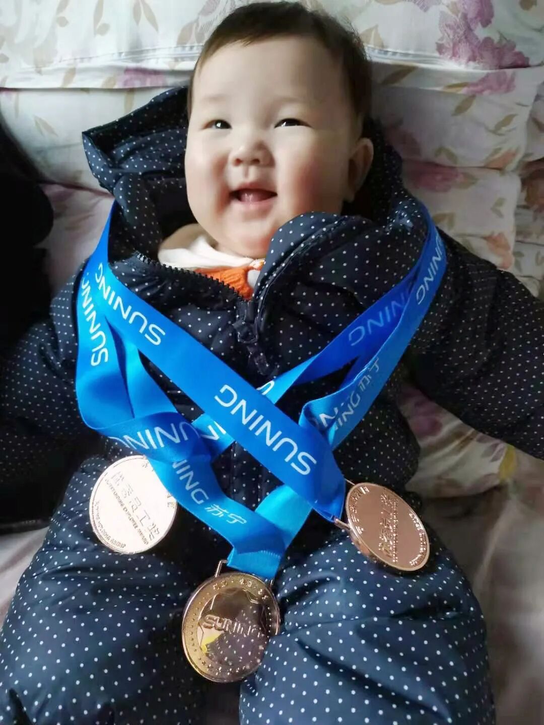 这是来自金融总部支付事业部同事陈昊的一张照片,陈昊写道:“这是在2019年终总结前后拍摄的一张照片,当时我入司四年三获优秀员工,是公司的认可、客户的信任,也是一份沉甸甸的责任。那一年我还有了宝宝,给她挂上每一枚奖牌的时候,都会涌上一段记忆,五味杂陈。那天小家伙笑的很甜,都说最长情的告白就是陪伴,苏宁陪伴我结婚生女,我陪伴苏宁勇往直前。”