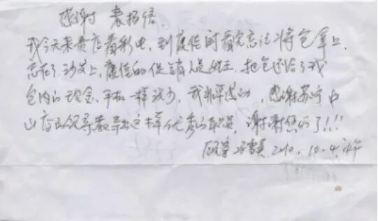 这是来自安徽大区的老物件,照片中的这两位老人是苏宁的忠实顾客,2001年老人在苏宁合肥的第一家门店开业的第一天购买了一台科龙空调,发票上写的“免费移挂一次,免费充氟一次,免费保养一次”,19年过去了,今年夏天,老人的空调不制冷了,苏宁帮客师傅马上上门进行了维修。19年过去了,苏宁的服务始终如一,老人为苏宁的服务题词:“安徽苏宁,服务贴心,诚信经营。”