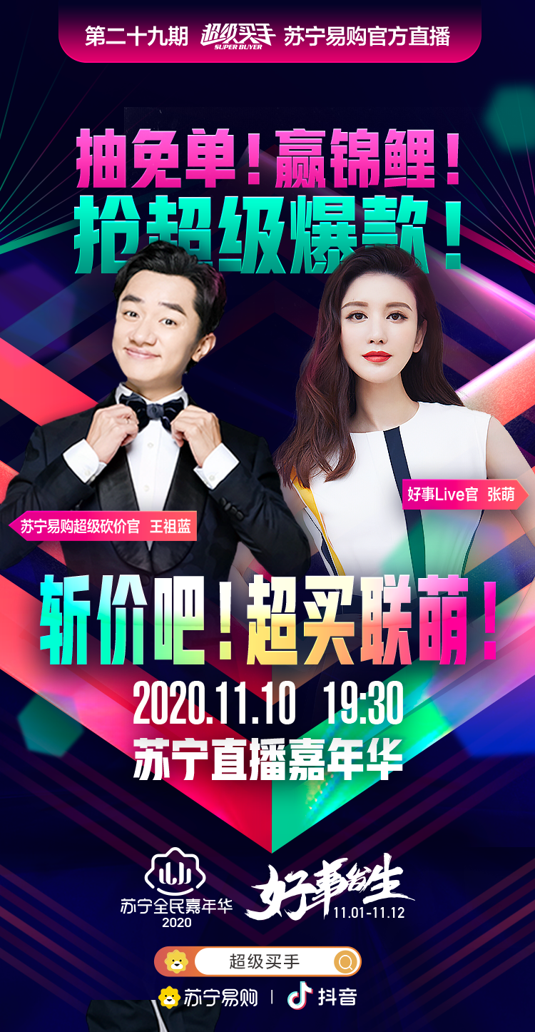 双十一,超级买手直播间将贾乃亮、彭昱畅、欧豪、王祖蓝、李佳航、王建国、张歆艺、乔欣、张萌等合作艺人组成直播嘉年华,狂欢十三场。天天不断播的策划出炉后,他们已经意识到了接下来会是一场大战,没有休息时间,也是体力、脑力的极度消耗,以前他们一周只用准备一场,但团队人数没有扩充的情况下,这次是连续十三天。为了双十一,整个团队都拼了。