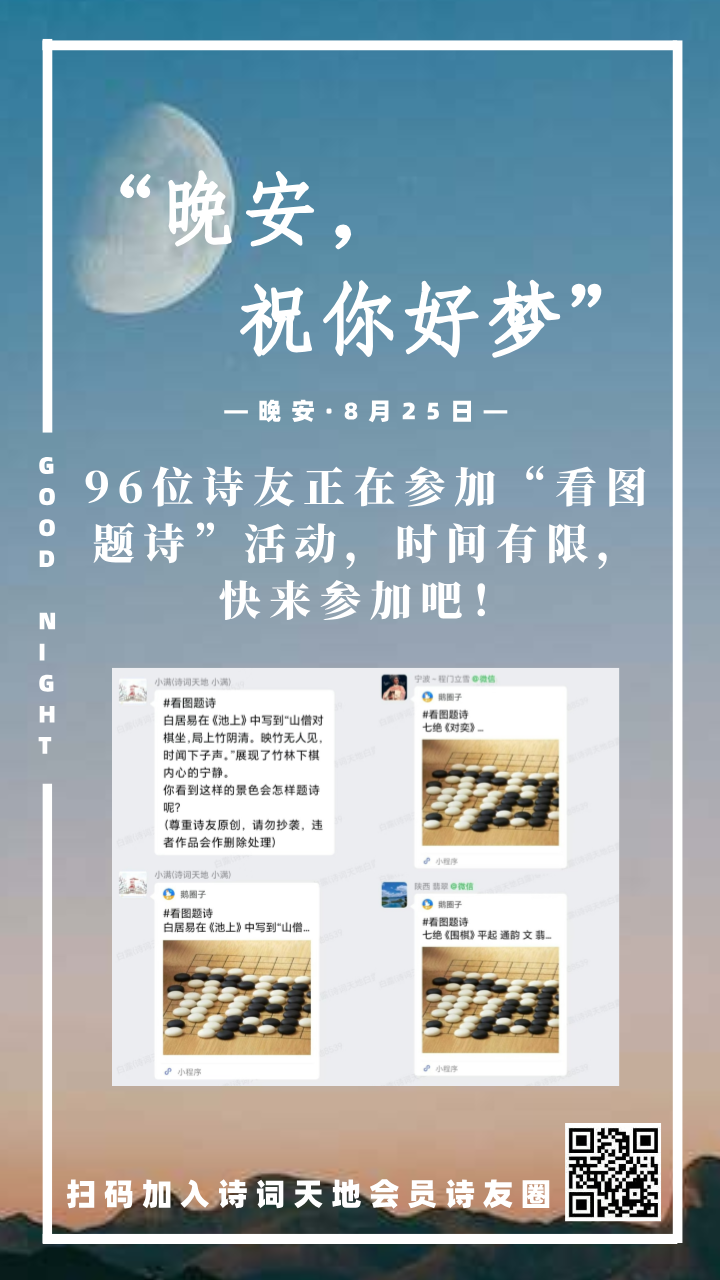 晚安海报丨96位诗友正在参加“看图题诗”活动,时间有限,快来参加吧!