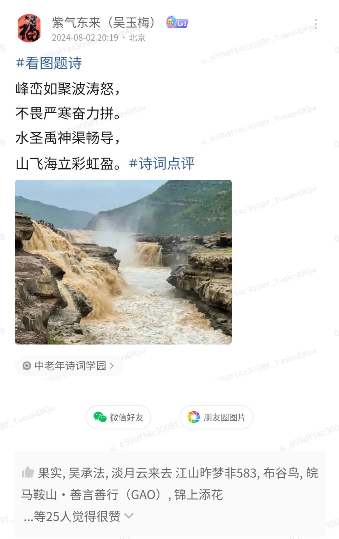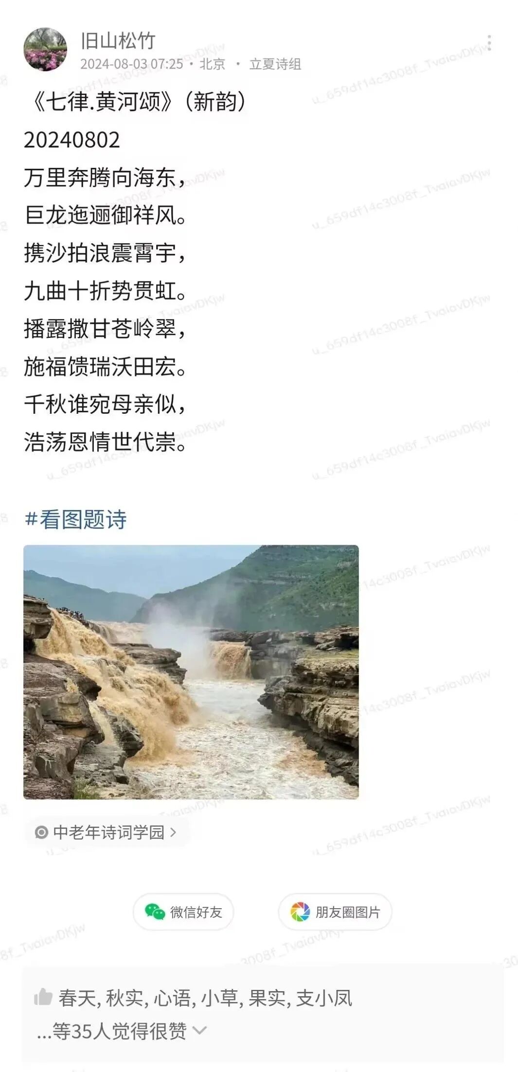 恭喜 旧山松竹 会员诗友,在上周五看图题诗取得点赞数第一的成绩,获得称号“题诗神手“。