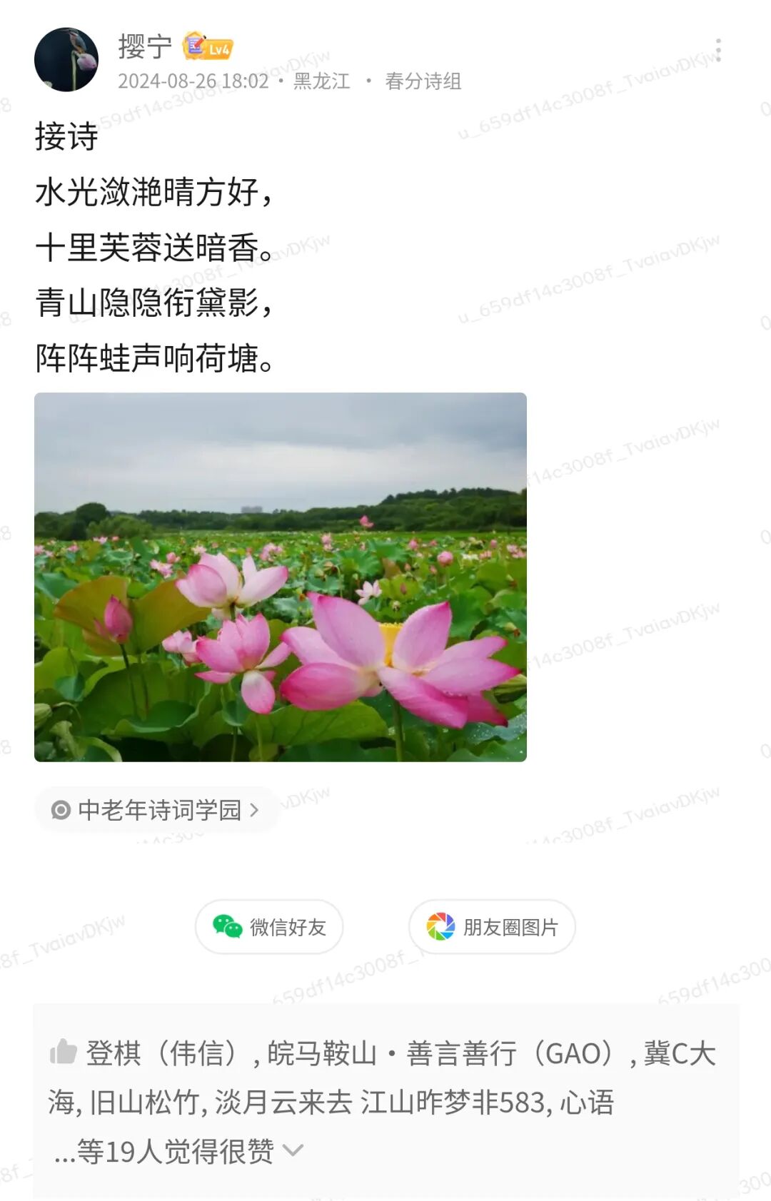 “语尽意未休,断句续佳篇。”接诗活动为“诗词天地会员圈”特有活动,诗友们以独特的视角展现诗词之美,将自己所学所知都展现出来。
