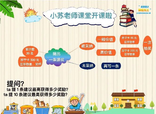 Hi,亲爱的数学天才,火热进行的全员服务体验征集活动你参加了吗?小苏老师刚刚提交了一条建议,显示已接收,感觉自己一吐为快后,奖励也在向我招手。我细细研究了一下奖励机制,发现一条被采纳的高价值建议价值不菲。如果是十条,好像一块华为手表,或者两瓶神仙水已经拥入怀中,母亲节礼物也就解决啦。