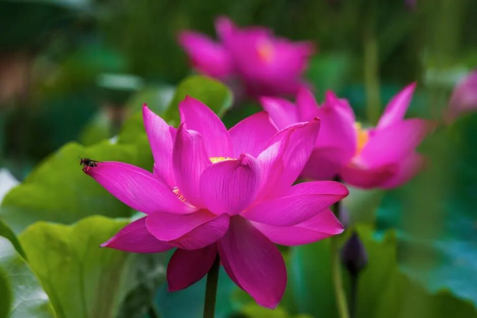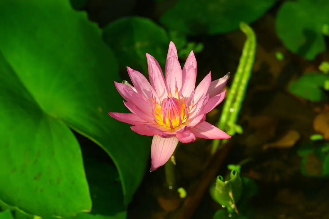 池塘蜓劲舞,绚丽芳香随。