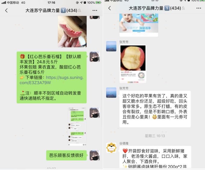 “早呀”变成了“你今天带了多少单”、“你推了什么好的商品”。在大区群里,大家也会将自己买的“俏”的商品、文案、买家秀照片、好评等发在群里,互相分享。