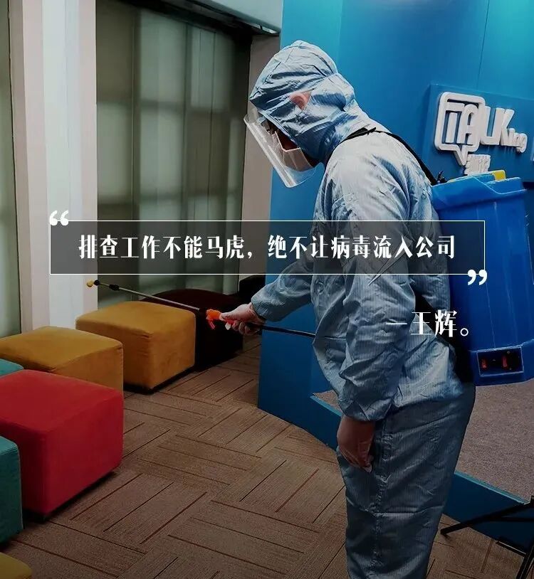 一遍遍喷洒消毒液,对公司进行全面消毒。