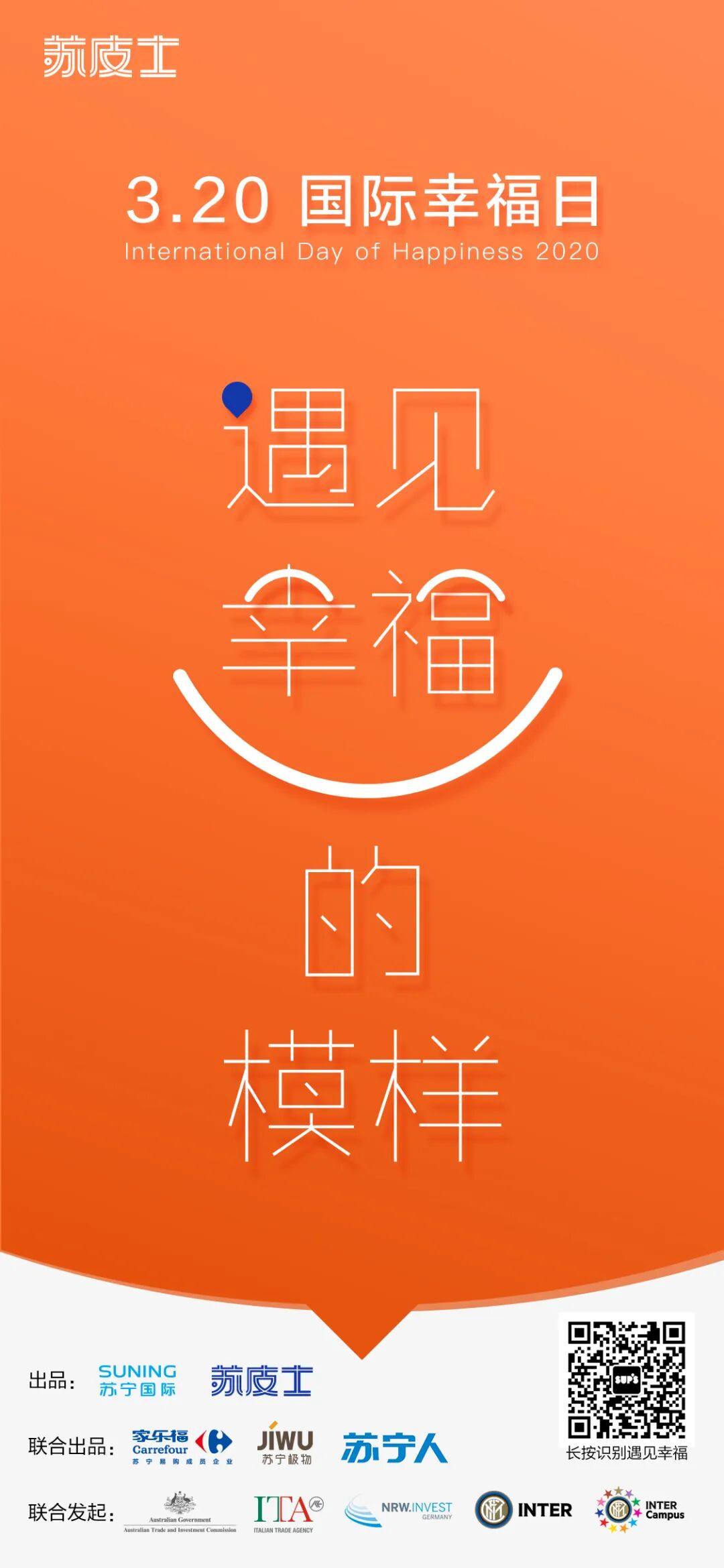 3月20日是国际幸福日,响应联合国号召,苏宁集团旗下高端零售品牌苏皮士,联合苏宁国际、家乐福中国、苏宁极物、国际米兰足球俱乐部、澳大利亚驻沪总领馆、意大利对外贸易委员会、德国北威州投资促进署,共同发起“遇见幸福的模样”主题策划。