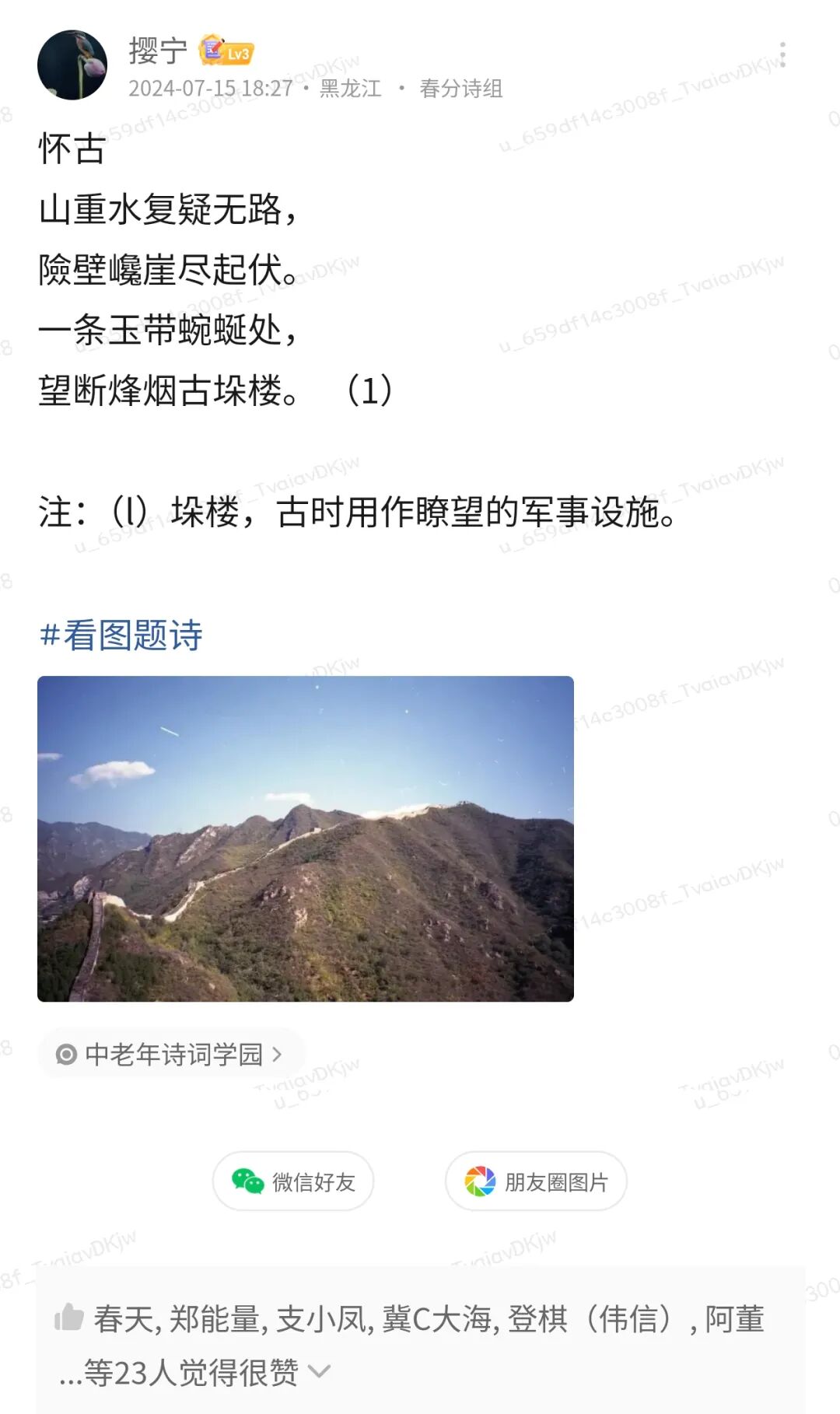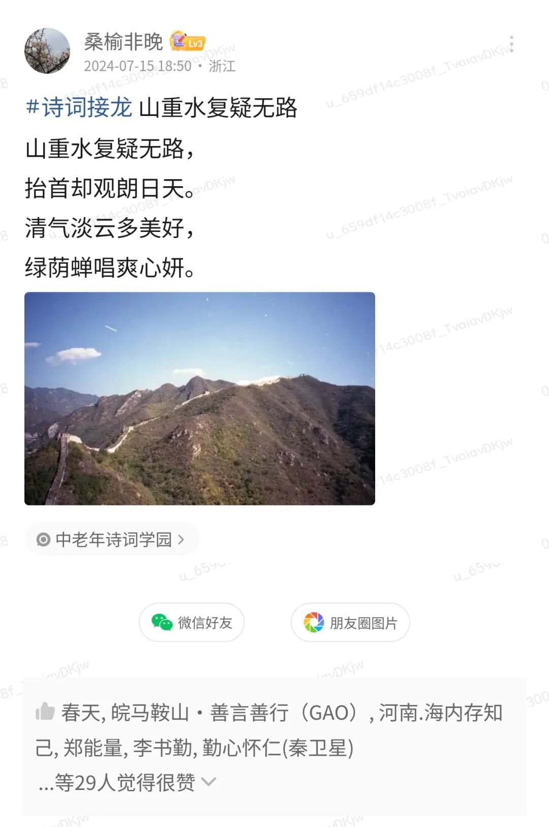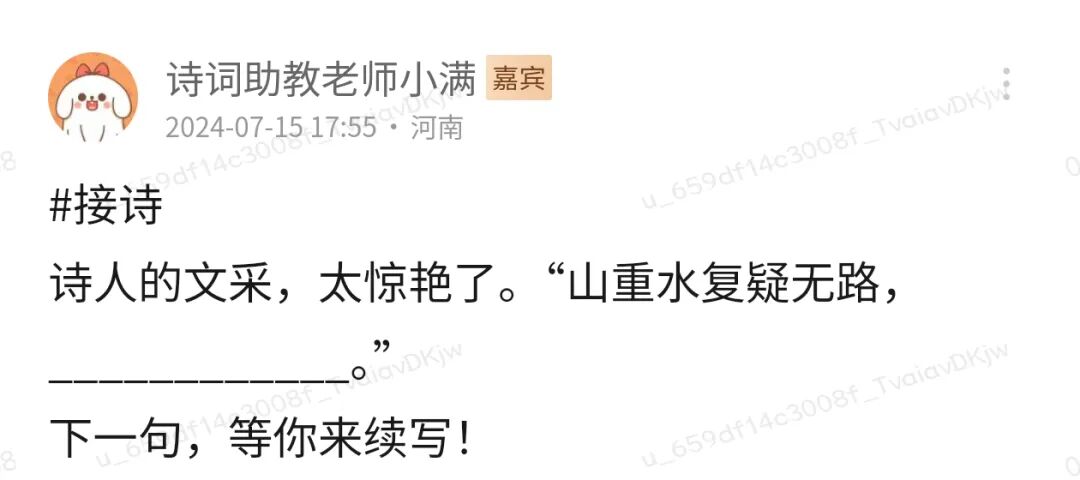 “语尽意未休,断句续佳篇。”接诗活动为“诗词天地会员圈”特有活动,诗友们以独特的视角展现诗词之美,将自己所学所知都展现出来。