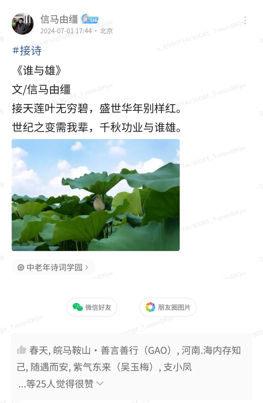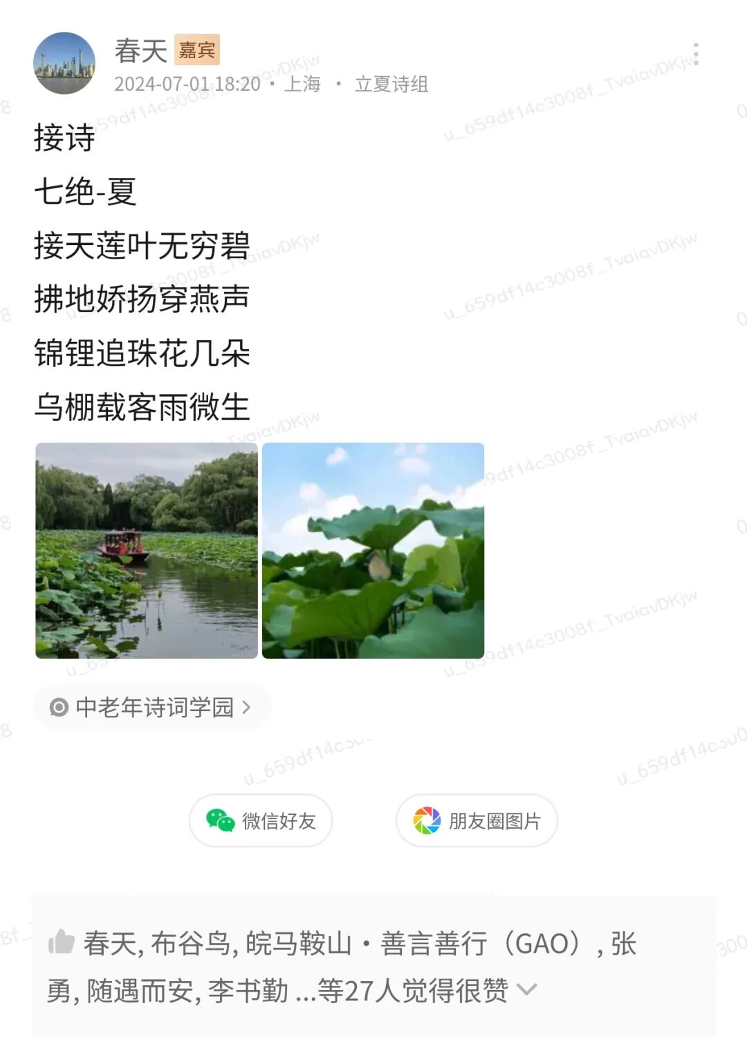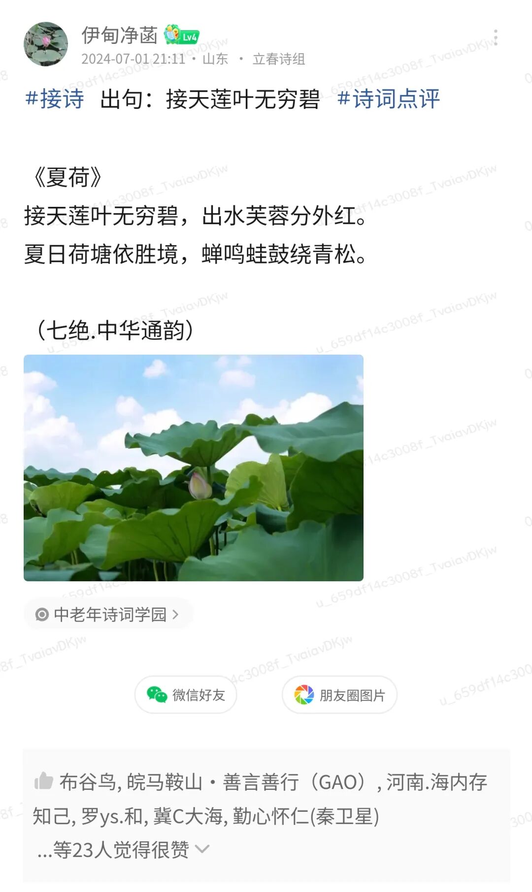 “语尽意未休,断句续佳篇。”接诗活动为“诗词天地会员圈”特有活动,诗友们以独特的视角展现诗词之美,将自己所学所知都展现出来。