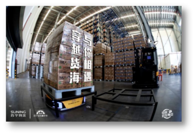 苏宁无人仓以AGV系统为核心载体,以自主研发的设备控制与调度平台为仓库的大脑,结合无人叉车、无人包装机、机械臂等无人设备,组成了高效安全的“战疫”团队,保障了春节期间的用户购物需求。