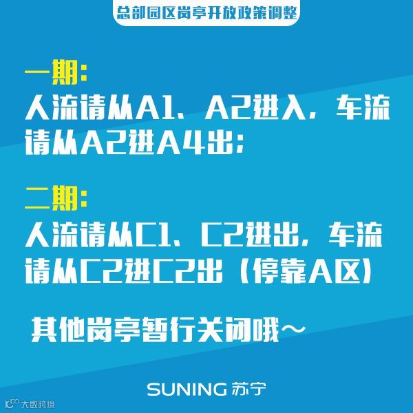 并且一期办公的员工从A1、A2步行进出,驾车员工从A2进A4出。二期办公的员工从C1、C2进出,驾车员工从C2进出(停靠A区)。其他岗亭,暂为关闭状态。