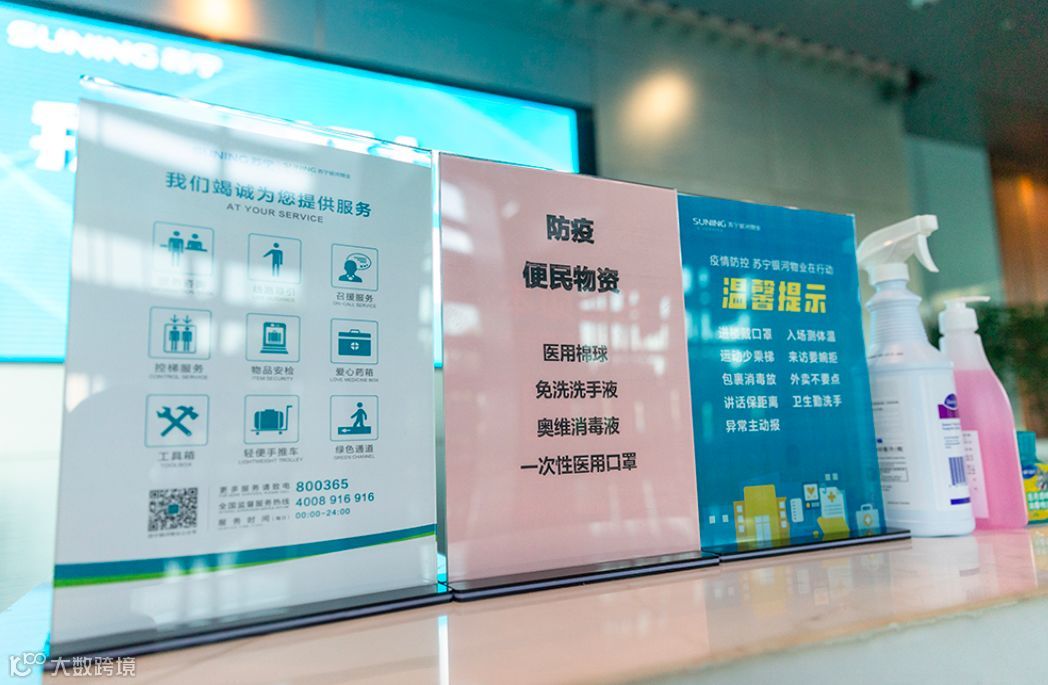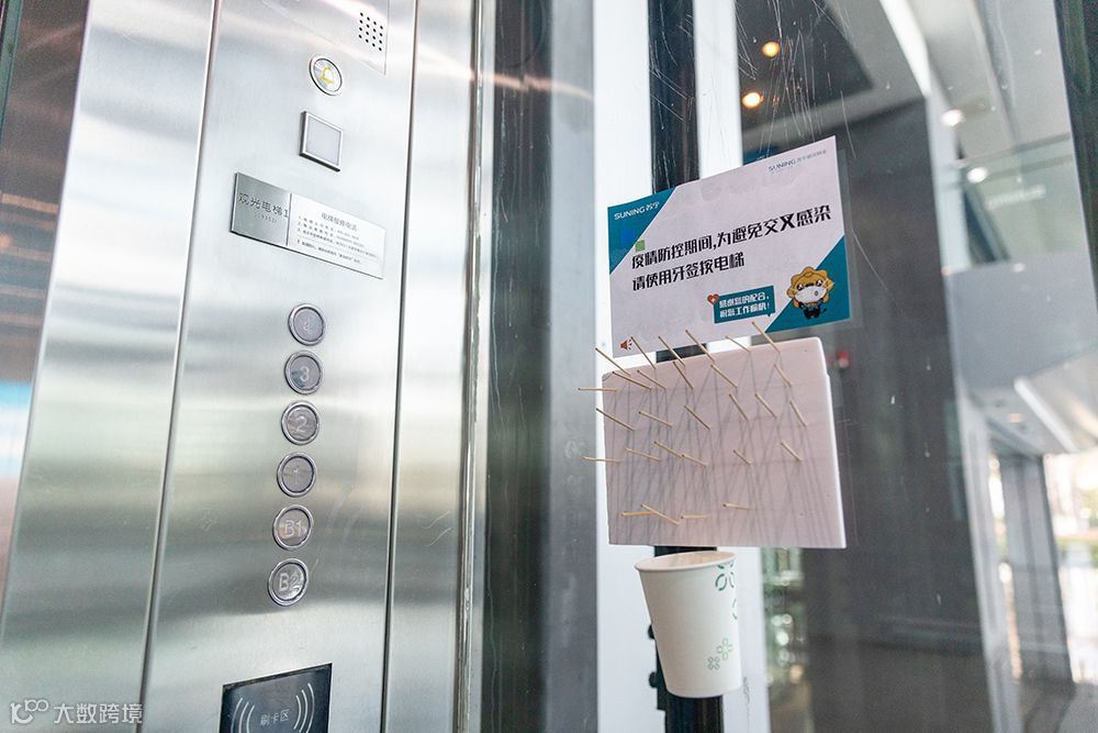 除此以外,苏宁还在各个电梯厢准备了一次性辅助按键隔离小工具,在前台准备了免洗洗手液、一次性医用口罩等便民物资供员工使用。在各个楼层配置了废弃口罩回收垃圾桶,将垃圾桶中的废弃口罩统一打包后送至专业处理点。并由各体系人事统计到岗人数,按需配发口罩等保障物资。全方位保障员工健康安全。