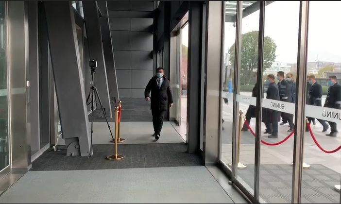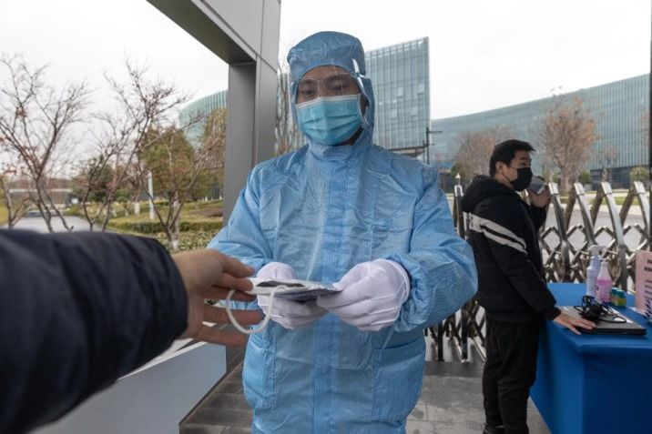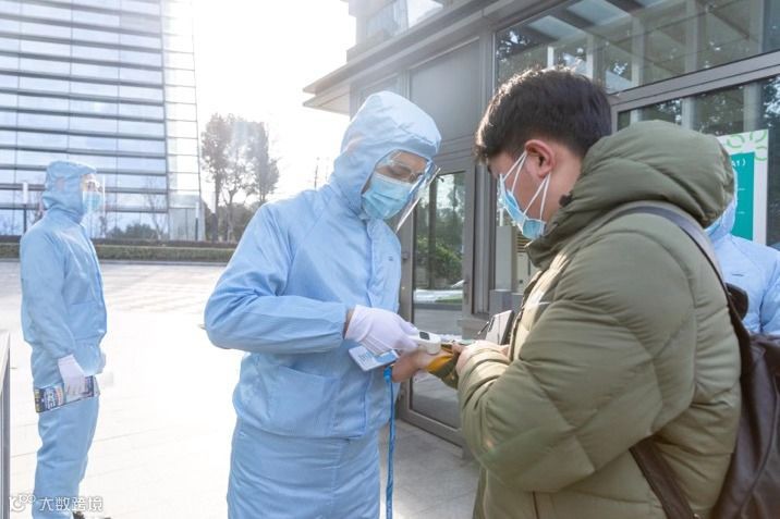 按照要求,所有员工必须佩戴口罩、体温检测合格后才能进入办公区,且全员、全天、全程皆需佩戴。