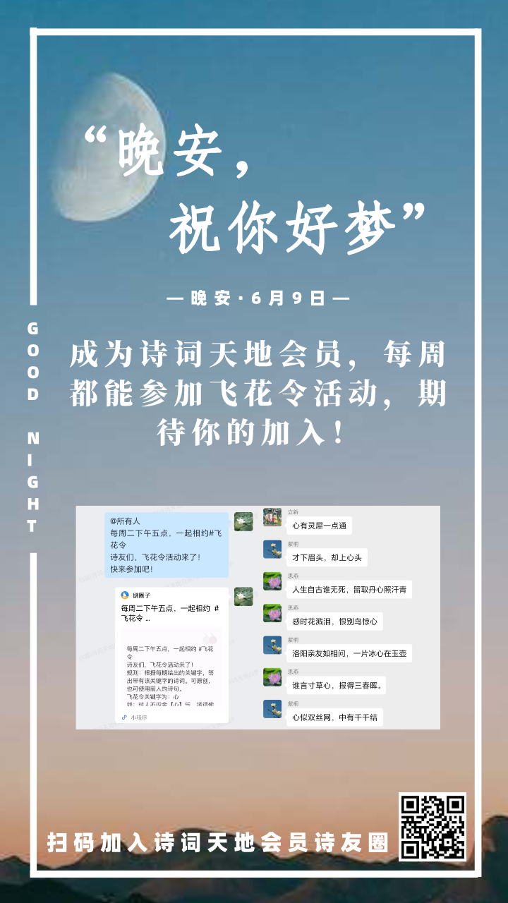 晚安海报丨成为诗词天地会员,每周都能参加飞花令活动,期待你的加入!