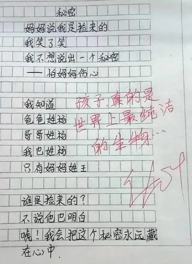 这首诗,让我们体会到了一份温暖的、藏在“秘密”里的爱。