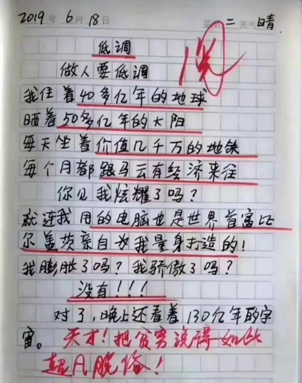 不知道你们有没有发现,这个孩子的作文里,看似是对写实日常的夸大,实则却能看见他心里的星辰大海。