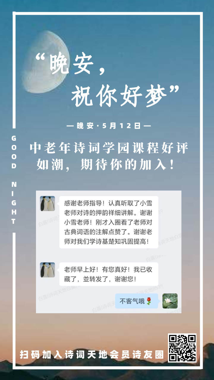 晚安海报丨中老年诗词学园课程好评如潮,期待你的加入!