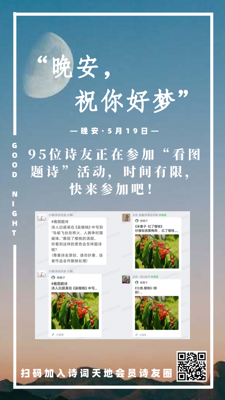 晚安海报丨95位诗友正在参加“看图题诗”活动,时间有限,快来参加吧!