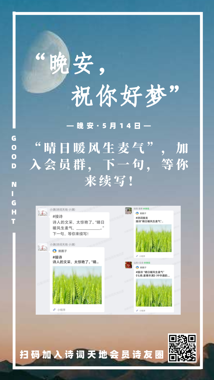 晚安海报丨“晴日暖风生麦气”,加入会员群,下一句,等你来续写!