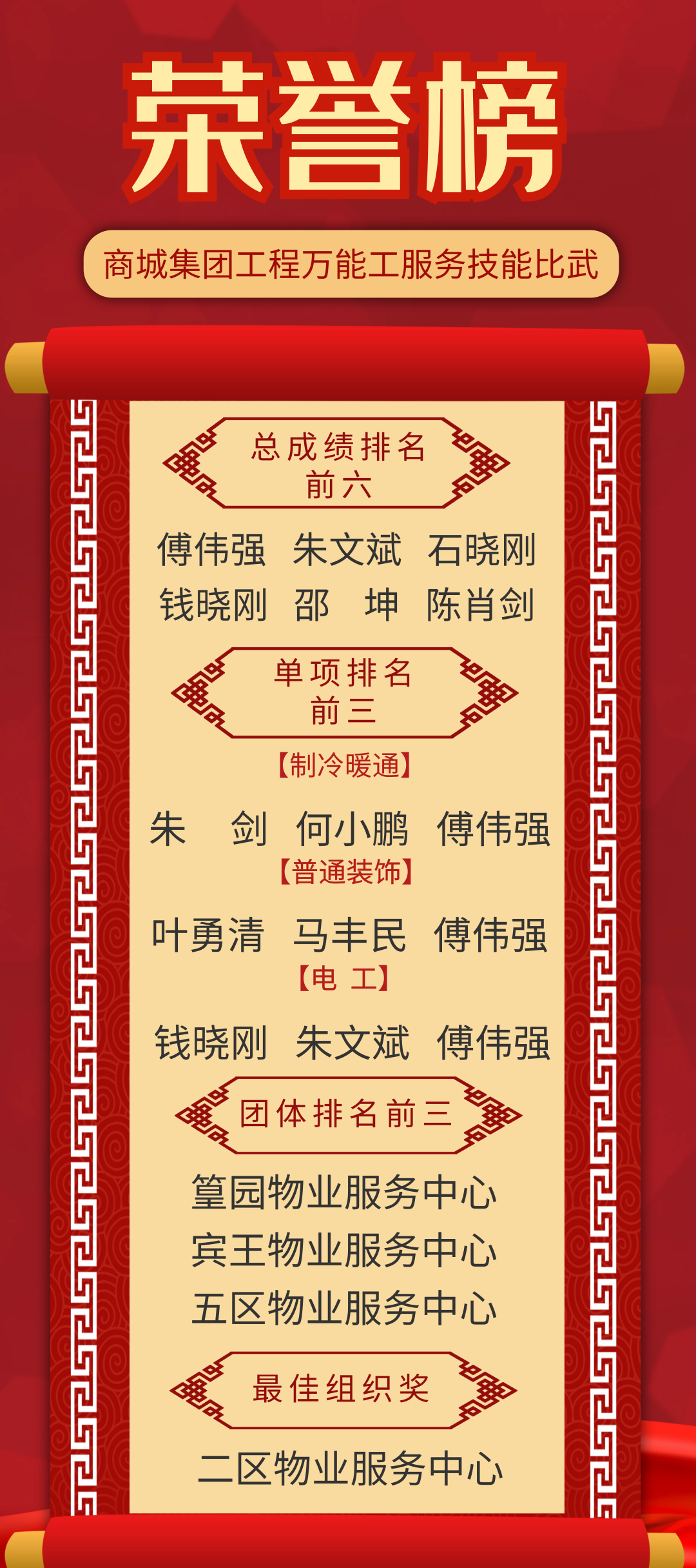 此次技能比武大赛展示了“商城人”的工匠精神和技能水平,营造起“比学赶帮超”的浓厚氛围,弘扬劳模精神、劳动精神、工匠精神,促进完善技能人才激励政策,鼓励更多青年职工走技能成才、技能报国之路,团结带领广大职工以更加坚定的政治忠诚、更加精湛的技能水平、更加昂扬的精神风貌、更加出彩的工作业绩迎接党的二十大胜利召开!