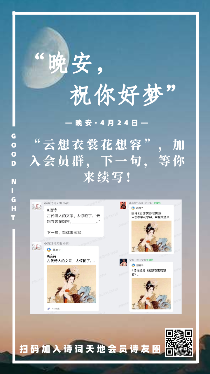 晚安海报丨“云想衣裳花想容”,加入会员群,下一句,等你来续写!