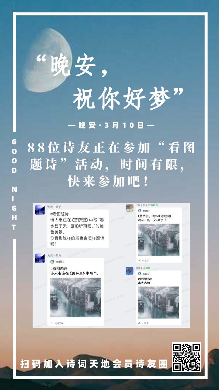 晚安海报丨88位诗友正在参加“看图题诗”活动,时间有限,快来参加吧!