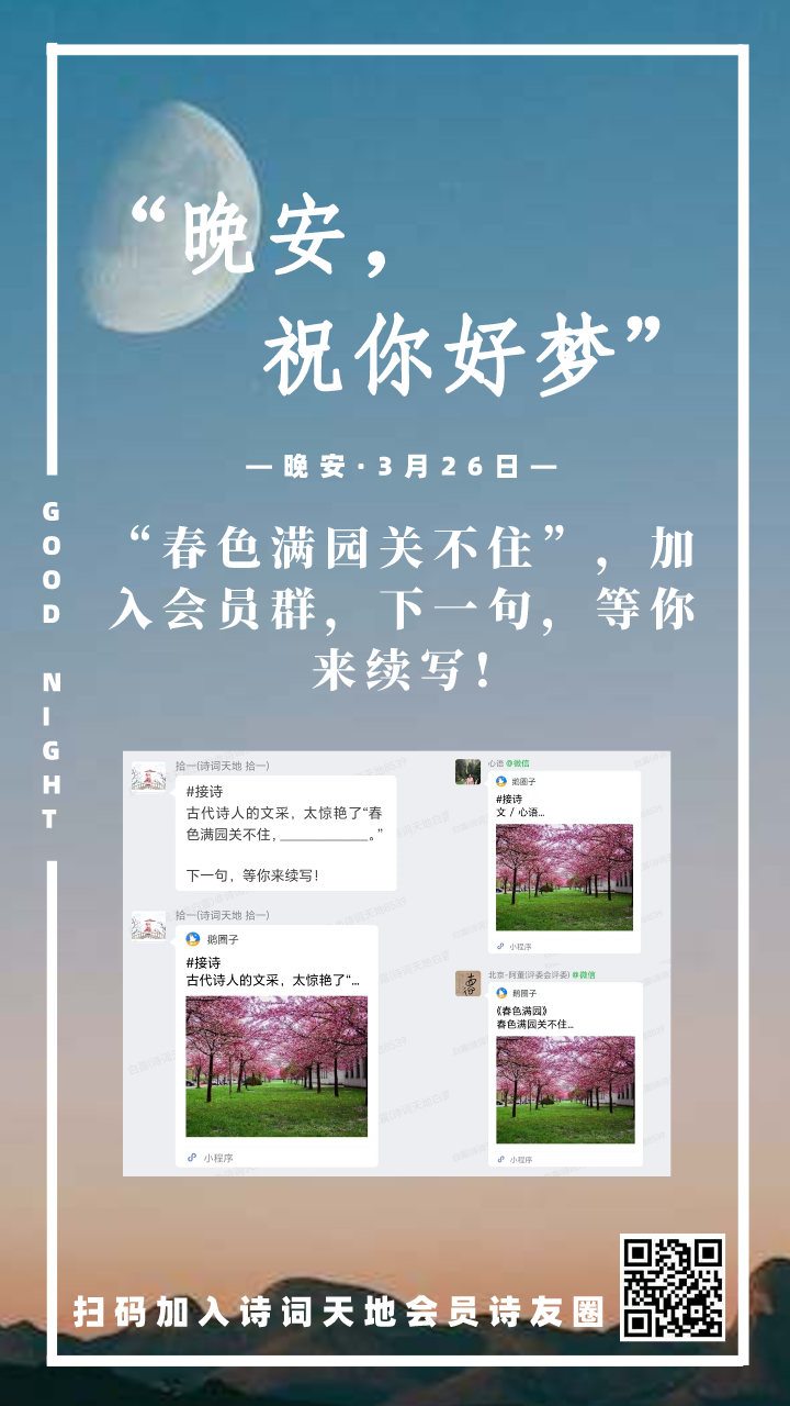晚安海报丨“春色满园关不住”,加入会员群,下一句,等你来续写!