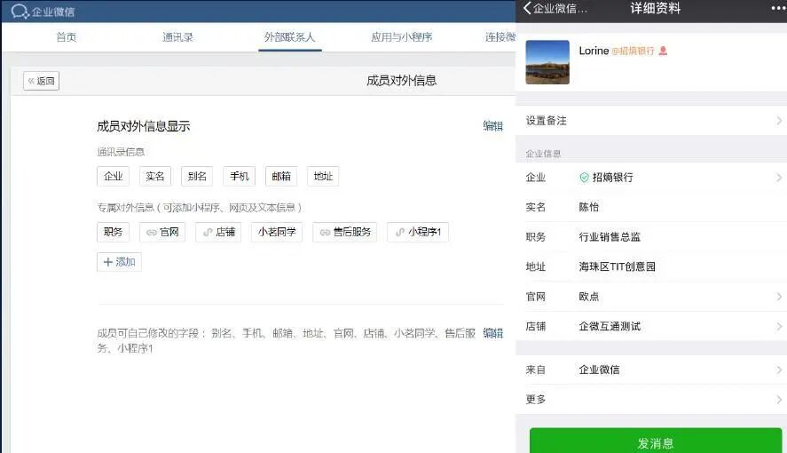客户可在聊天时查看员工企业信息