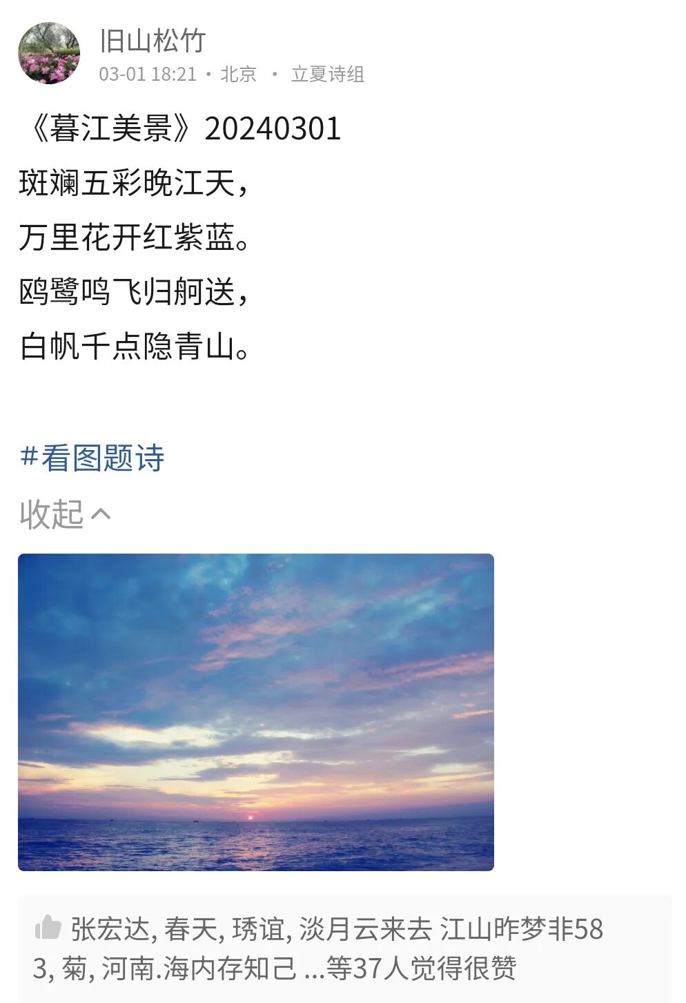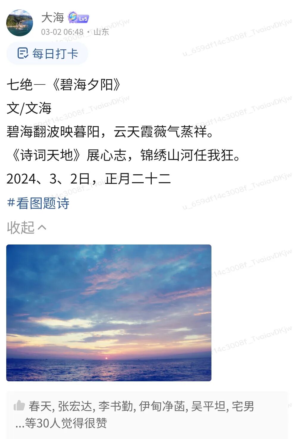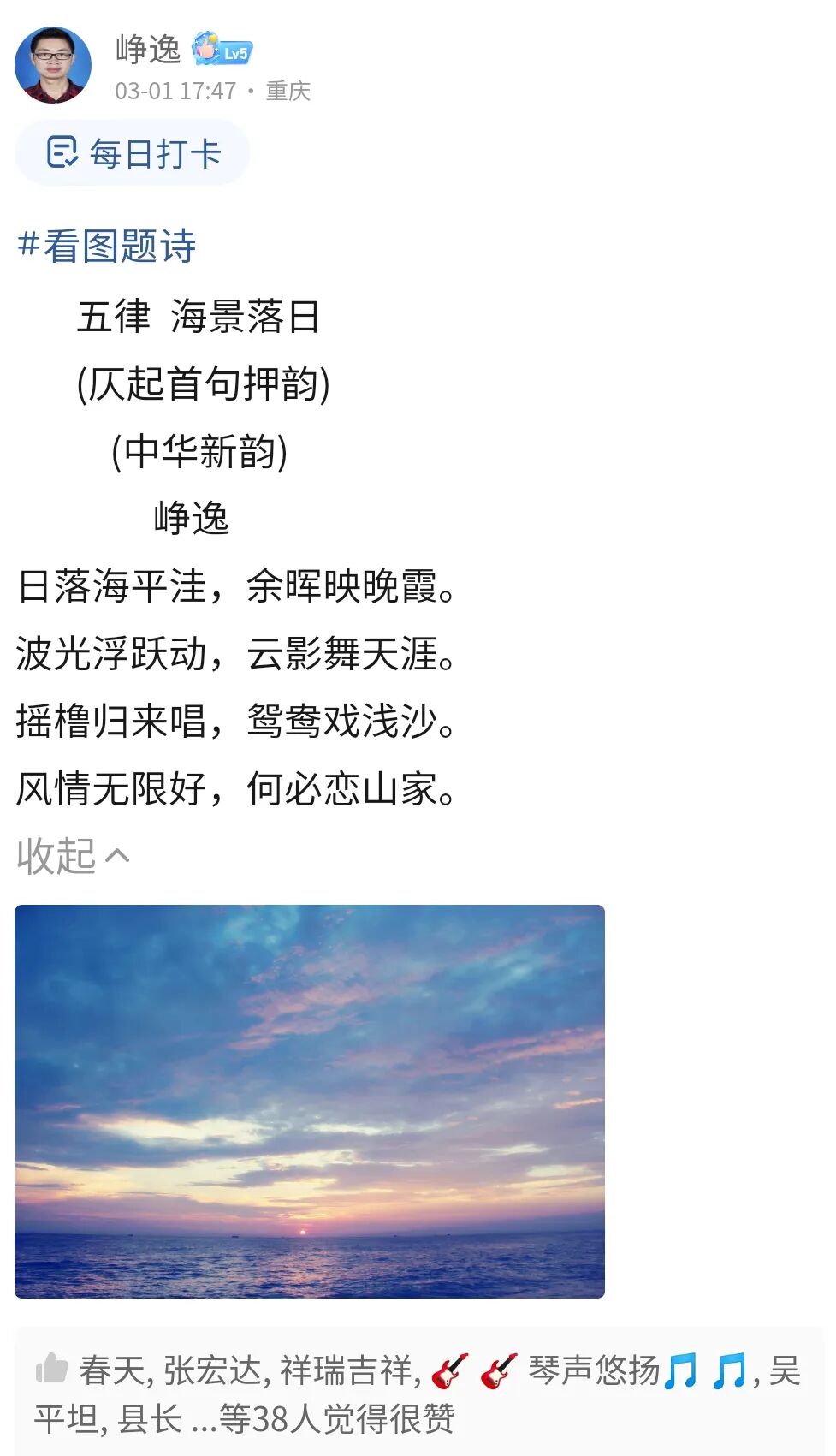 恭喜心语会员诗友,在上周五看图题诗取得点赞数第一的成绩,获得称号“题诗神手“。