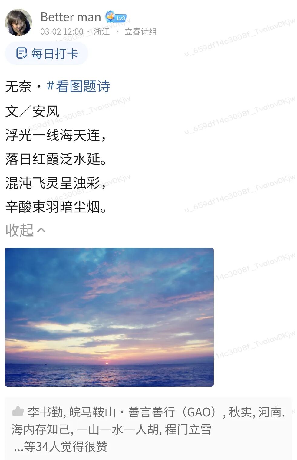 诗词天地会员圈特有的趣味诗词活动,每周一【接诗】、三【藏头诗】】、五【以图题诗】均在诗词天地会员圈举行。